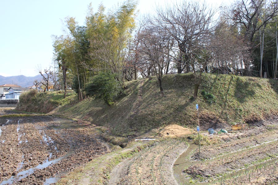 ・本郭北側の切岸 ・北西方向より城址を見る ・本郭と二郭の間の切通し ・城址南側の濠址(奥の藪は土塁址)