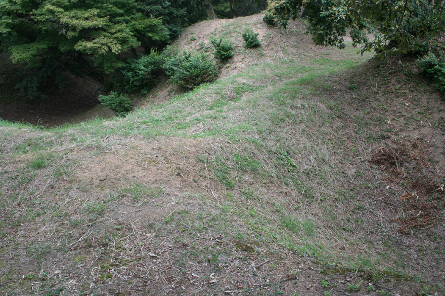 搦手曲輪の南虎口 ・ 広々とした搦手曲輪 ・ 最北端虎口 ・ 見事な横堀 ・ 搦手曲輪を取り巻く横堀