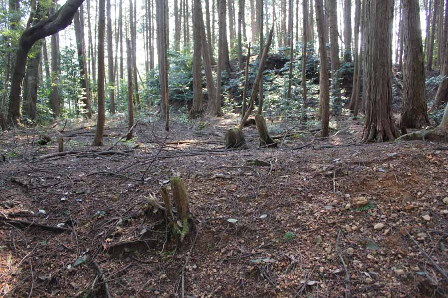 曲輪の切岸も十分な高さを有し、西方尾根の西端の土塁、虎口なども残っている。