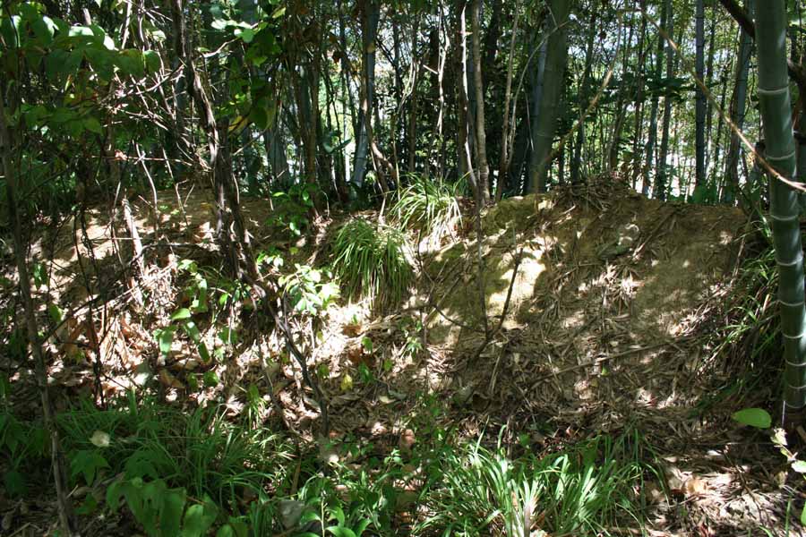 丘稜の鞍部に切られた堀切は香住駅方面へ竪堀となって続いている。堀切より尾根を登ると東城の東端曲輪で、その先は