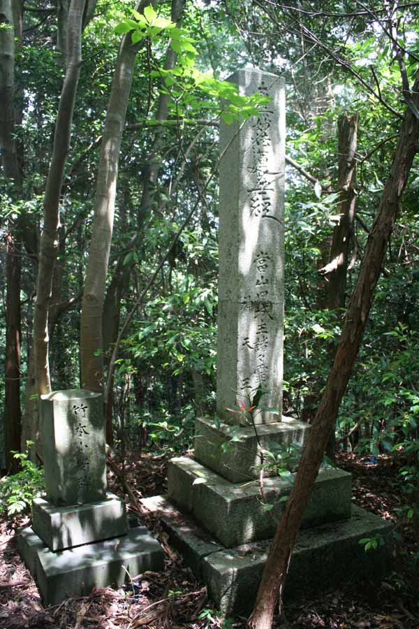 整備されて、忠魂碑が建ち、三角点が設けられている。主郭の北方と南方にも数段の曲輪が設けられ、要所に竪堀が